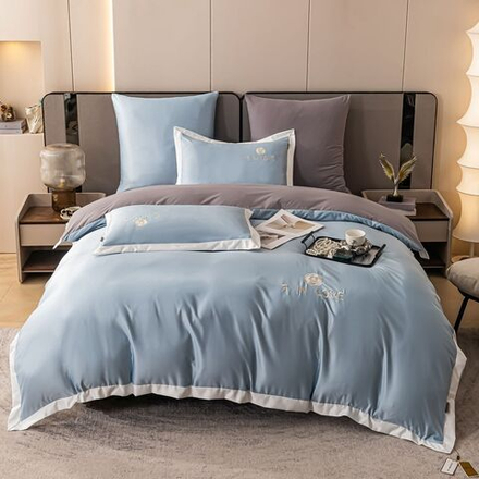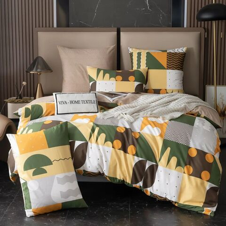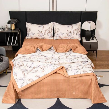 Комплект постельного белья Сатин с Одеялом 100% хлопок на резинке OBR179, Евро, простыня 140x200, наволочка 50-70 2 шт